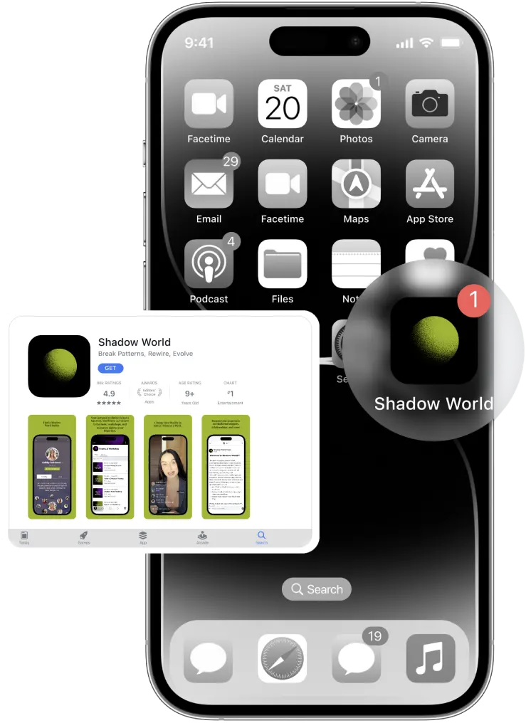 Most shadow work happens when you're calm and collected, but your shadow shows up when you're triggered, stressed, or overwhelmed. Shadow World gives you tools that work in your actual life - not just insights for later. The 7-12 minute Shift Sessions are designed to interrupt patterns in real time when they're happening.